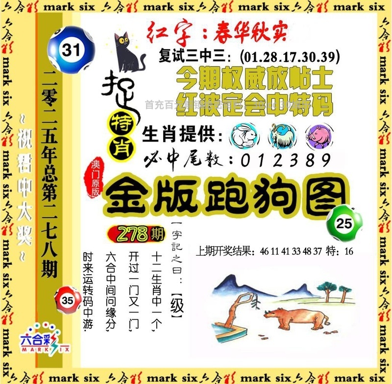 280期:天地两肖【地肖+马猪】开:鼠42准 |